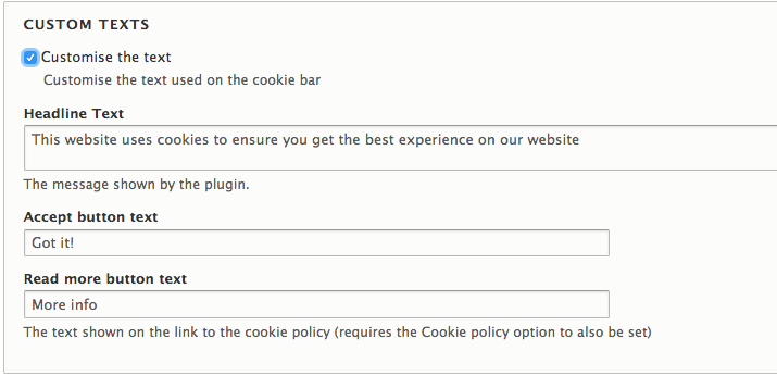 Cookie Consent custom text
