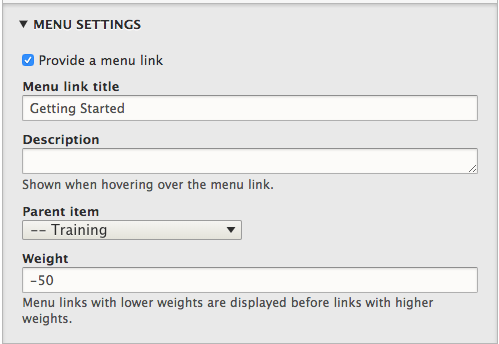 Menu Settings
