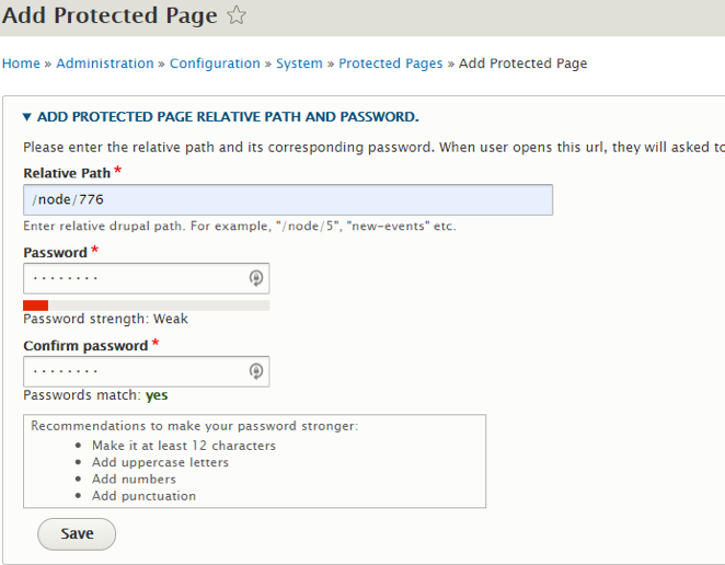 Protected Page path and password