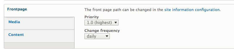 sitemap frontpage settings