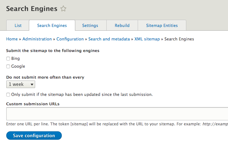 sitemap search engines configurations